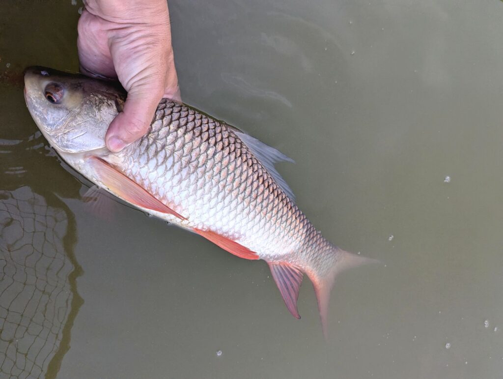 その後、表層にソウギョがいなくなり、中層を探ってみます。しかしなかなかアタリが出ません。