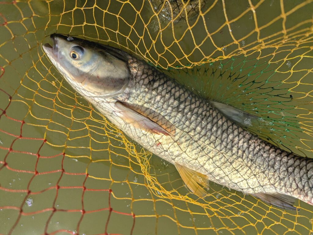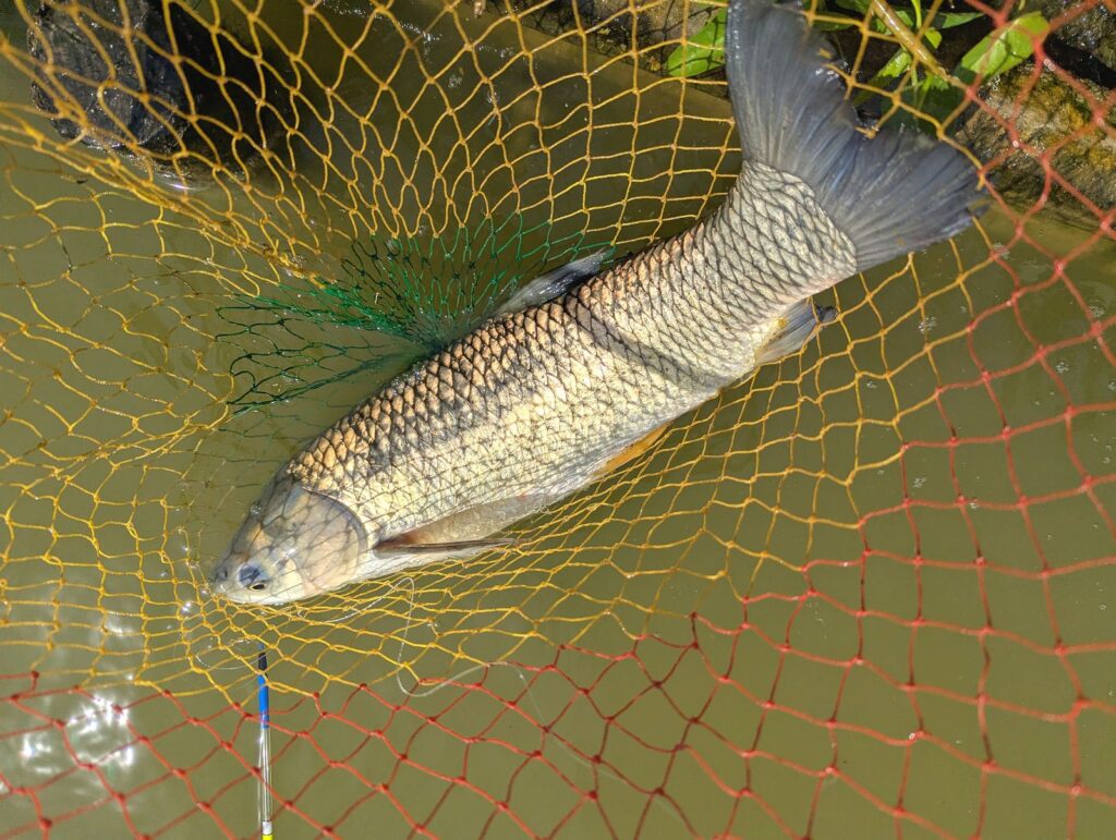 タイのファーストヒットはソウギョでした!50センチほどで引きは弱め。